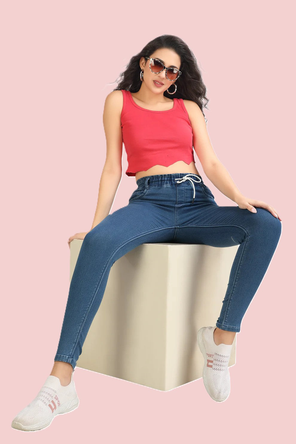 Stretchable Pink Jeans with Side Pockets
